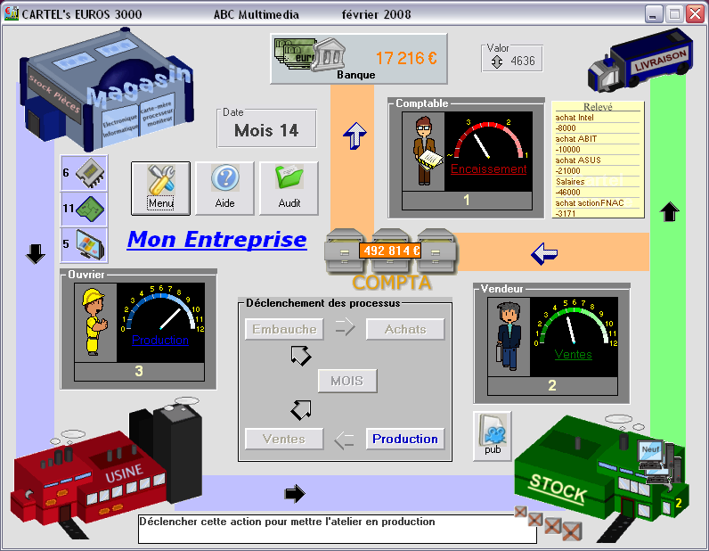 Cartel Euros 3000 version 6, le jeu d'entreprise gratuit à télécharger est disponible. Cartel Euros 3000 bénéficie d'une évolution sans cesse actualisée depuis plus de 10ans. Il s'agit du seul vrai simulateur d'entreprise sous Windows !